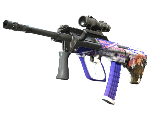 Powerful and accurate, the AUG scoped assault rifle compensates for its long reload times with low spread and a high rate of fire. It has been decorated with a heat transfer vinyl of an anime magazine cover.