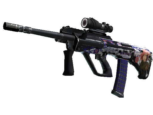 Powerful and accurate, the AUG scoped assault rifle compensates for its long reload times with low spread and a high rate of fire. It has been decorated with a heat transfer vinyl of an anime magazine cover.