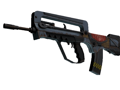 A cheap option for cash-strapped players, the FAMAS effectively fills the niche between more expensive rifles and the less-effective SMGs. This custom paint job is inspired by elements found on de_nuke from Counter-Strike 1.6.