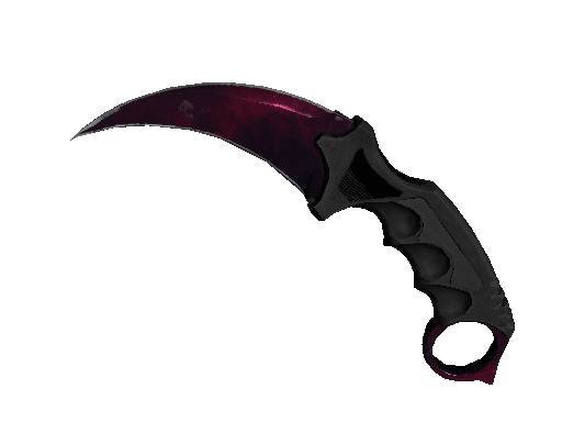With its curved blade mimicking a tiger’s claw, the karambit was developed as part of the southeast Asian martial discipline of silat. The knife is typically used with a reverse grip, with the finger ring on the index finger. It has been painted with black and silver metallic paints using a marbleizing medium, then candy coated.