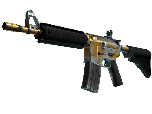 More accurate but less damaging than its AK-47 counterpart, the M4A4 is the full-auto assault rifle of choice for CTs. It has been painted with a sunrise in metallic paints.