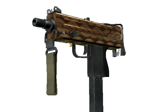 Essentially a box that bullets come out of, the MAC-10 SMG boasts a high rate of fire, with poor spread accuracy and high recoil as trade-offs. A Norse inspired pattern of gold interlocking rings has been applied.