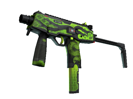 Manufactured in Switzerland, the cutting-edge MP9 SMG is an ergonomic polymer weapon favored by private security firms. A custom paint job referencing Operation Hydra, CS:GO’s 8th Operation, has been applied.